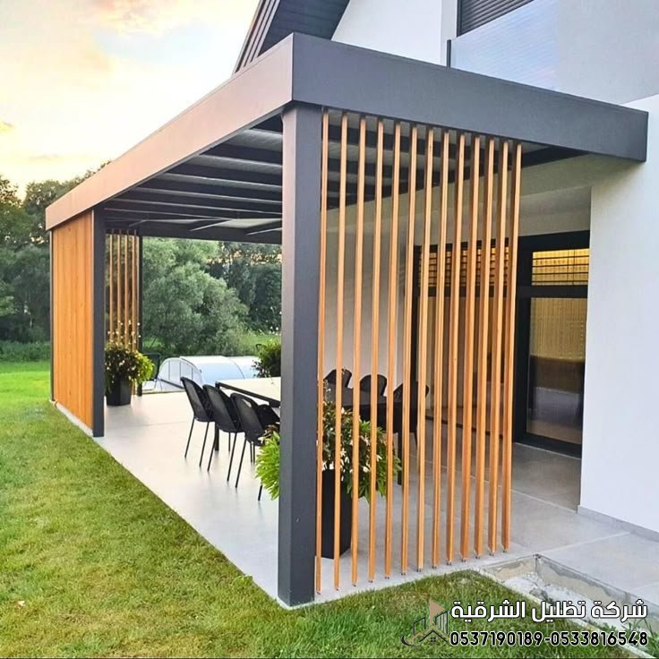 عند تركيب جلسة خارجية بمظلة بالدمام، يمكنك إضافة العديد من التجهيزات لتحسين الراحة والجمال. يمكن أن تشمل هذه التجهيزات إضافة إضاءة مريحة للمساء، أو استخدام وسائد وأغطية لحماية الأثاث. هناك أيضًا إمكانية استخدام الستائر الجانبية أو الجدران القابلة للسحب لتوفير الخصوصية والحماية من الرياح.