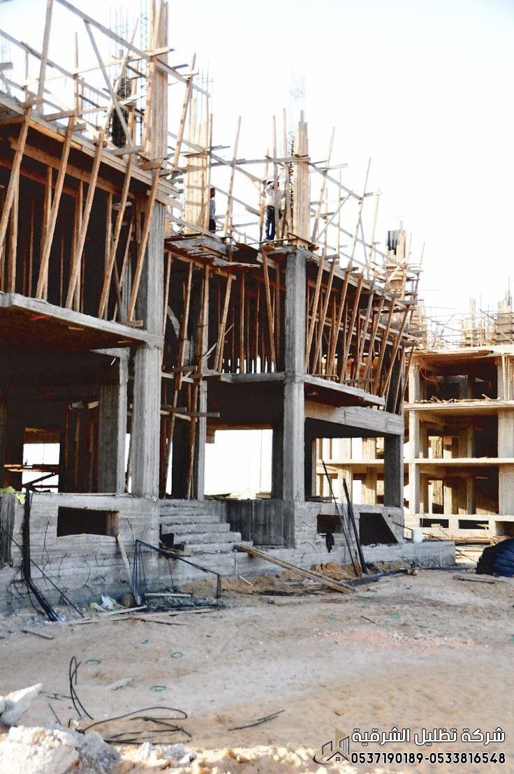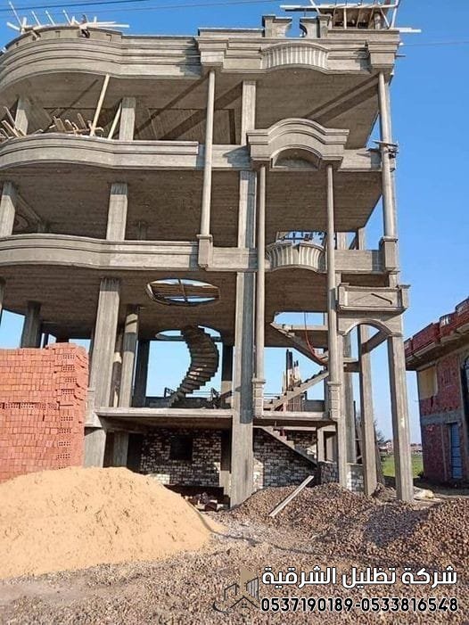 الهيكل الخرساني: يشمل بناء الجدران والأعمدة والأسقف وفقًا للمواصفات الهندسية.