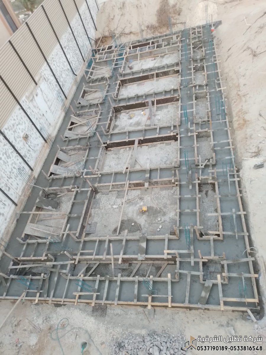 أعمال الحفر والتأسيس: يتم تجهيز الموقع وأعمال الحفر ووضع الأساسات القوية.